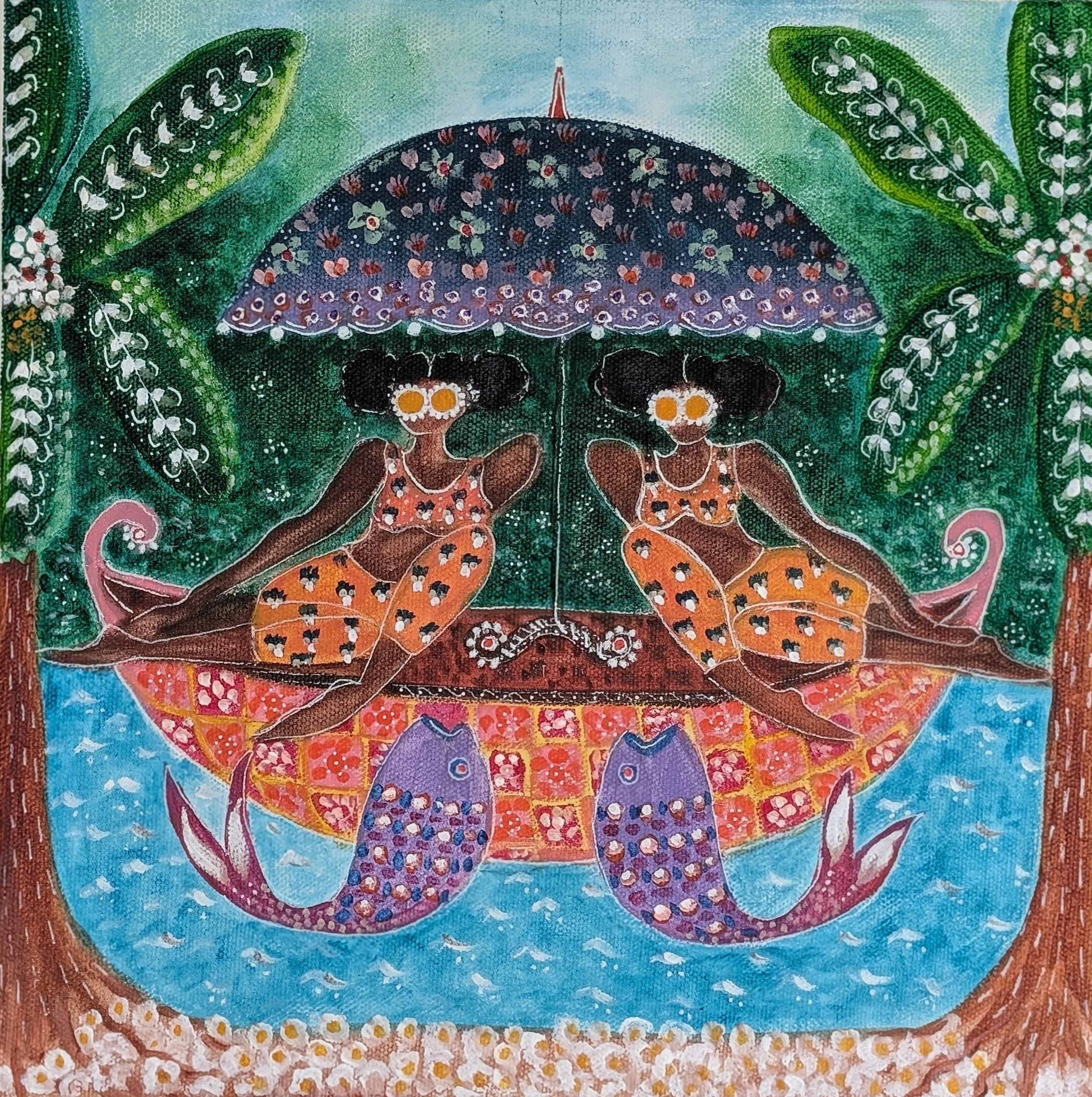 This piece asks you to find your greens and blues, away from the hustle, whatever lets you calm your nerves, a peaceful realm where you can get lost in the moment, may be Koi gazing.. in your own company!